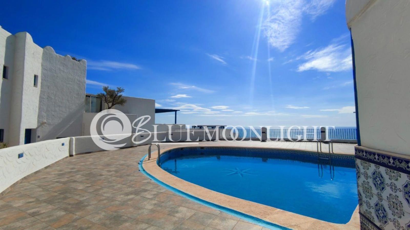 Ático de 2 dormitorios. Amplia terraza con vistas al mar. A.A. y C.C. por radiadores a gas. Garaje cerrado de 30M2. Zonas comunes con varias piscinas.
