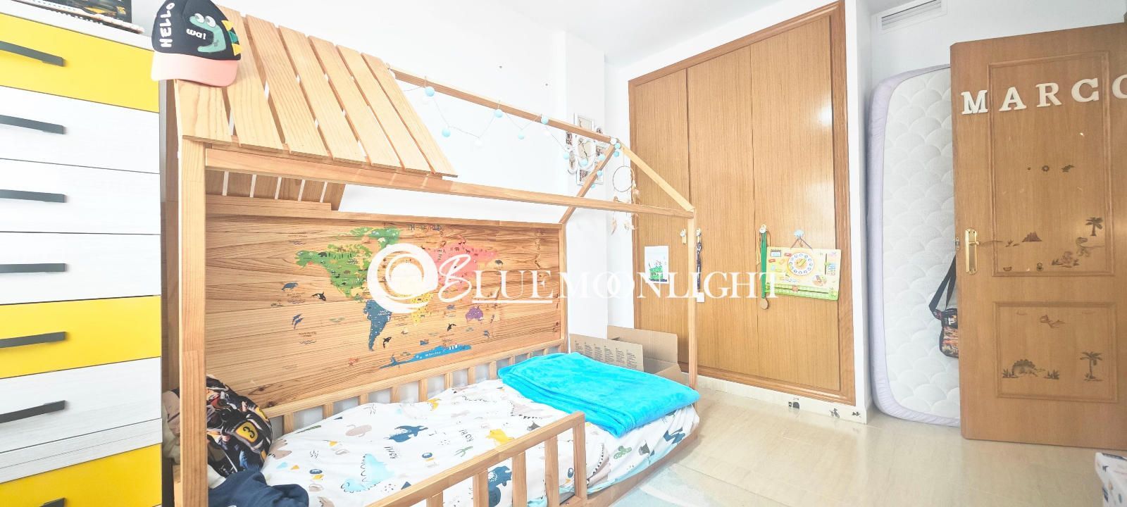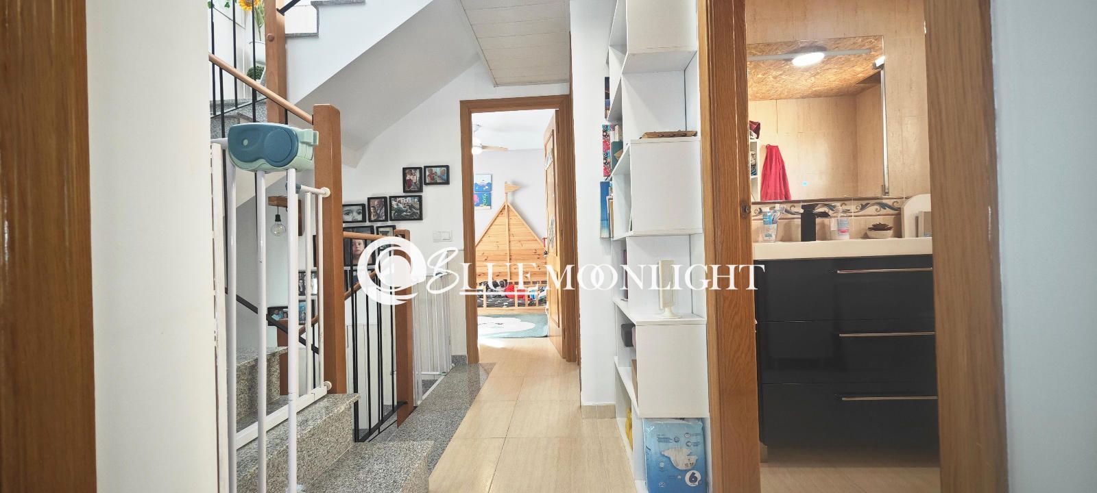 La planta superior alberga un tercer dormitorio, otro baño completo y acceso a una terraza privada que aporta mayor independencia dentro de la vivienda.