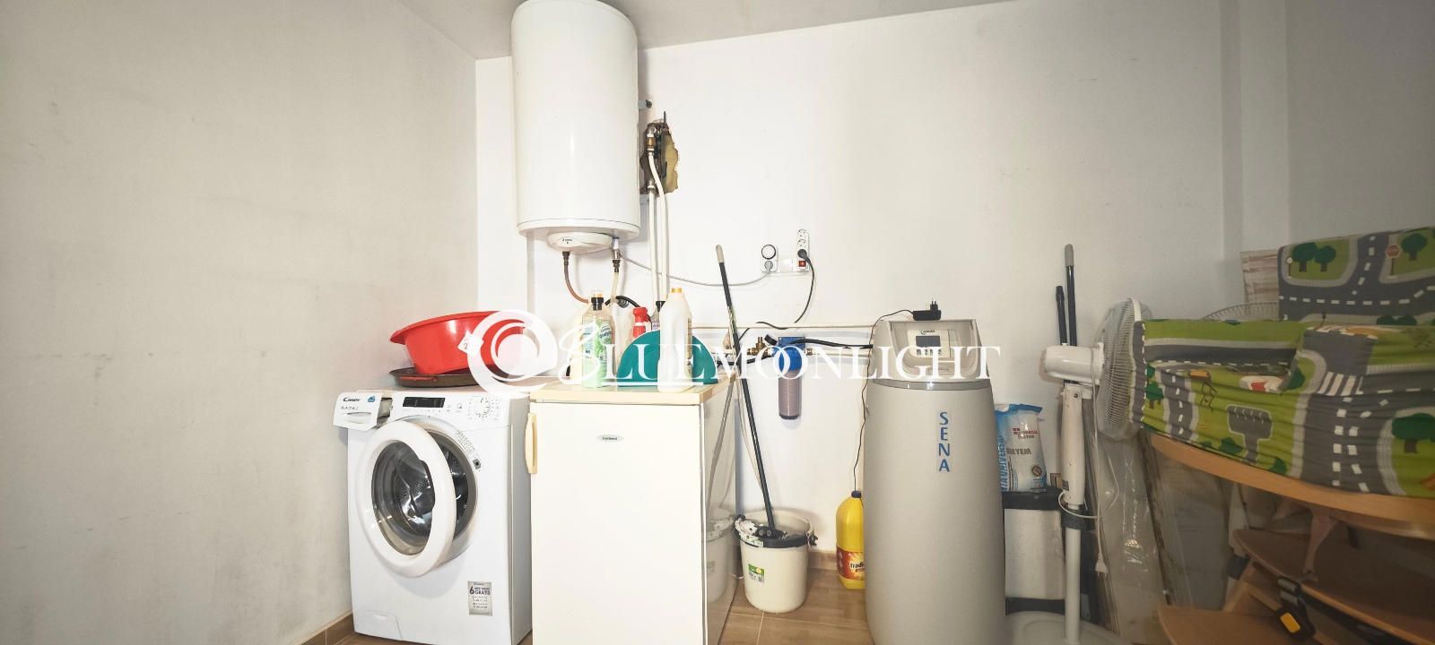 Por último, en la planta inferior se sitúa un amplio garaje con espacio adicional para almacenaje y una práctica zona de lavandería.