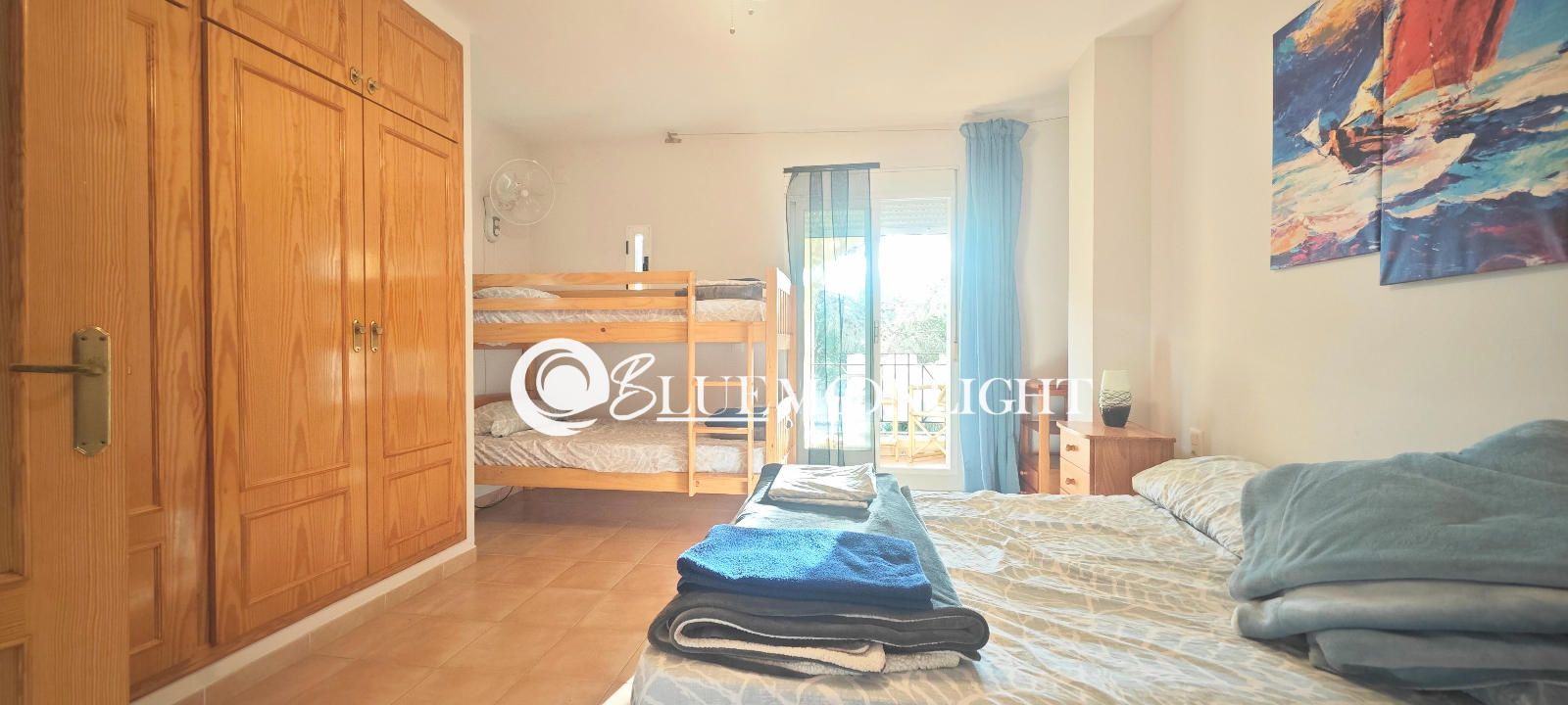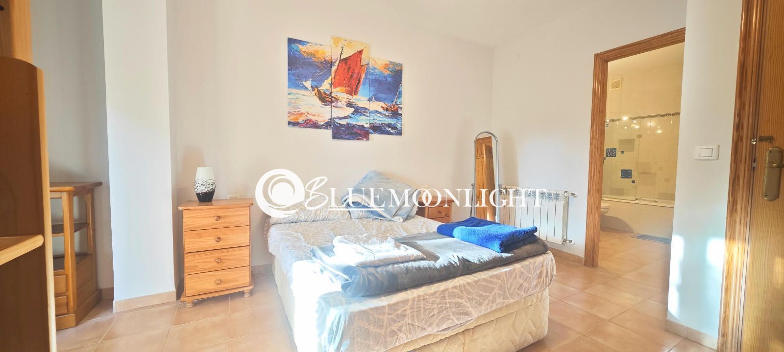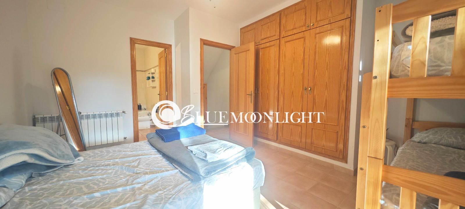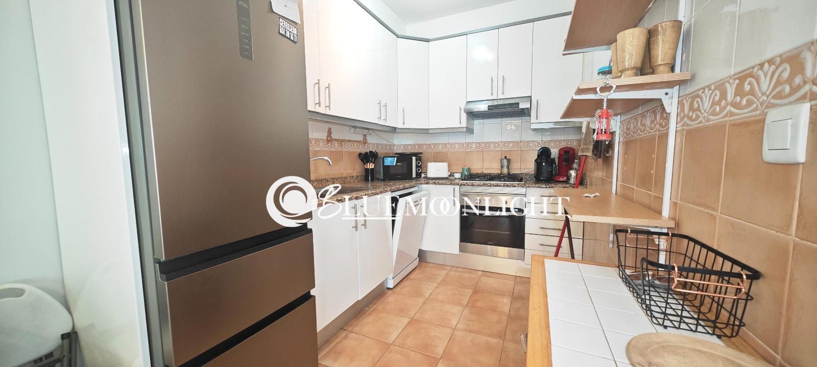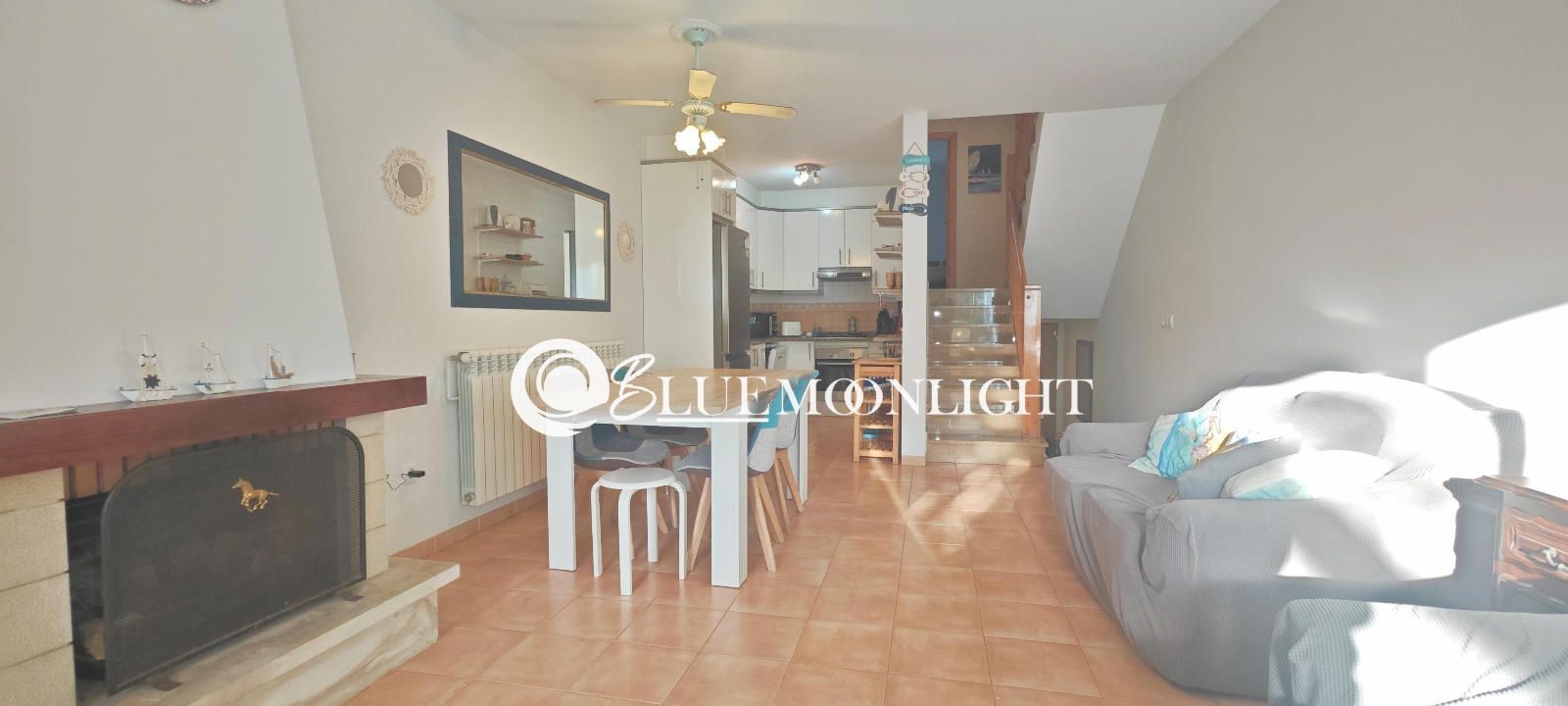 Chalet adosado en venta dentro de una urbanización privada y cerrada, situada en un entorno tranquilo a tan solo 2 km del centro de Peñíscola. La vivienda ofrece una distribución cómoda y funcional, con cuatro dormitorios, dos baños completos y una cocina semiabierta que se comunica directamente con un amplio salón-comedor muy luminoso.